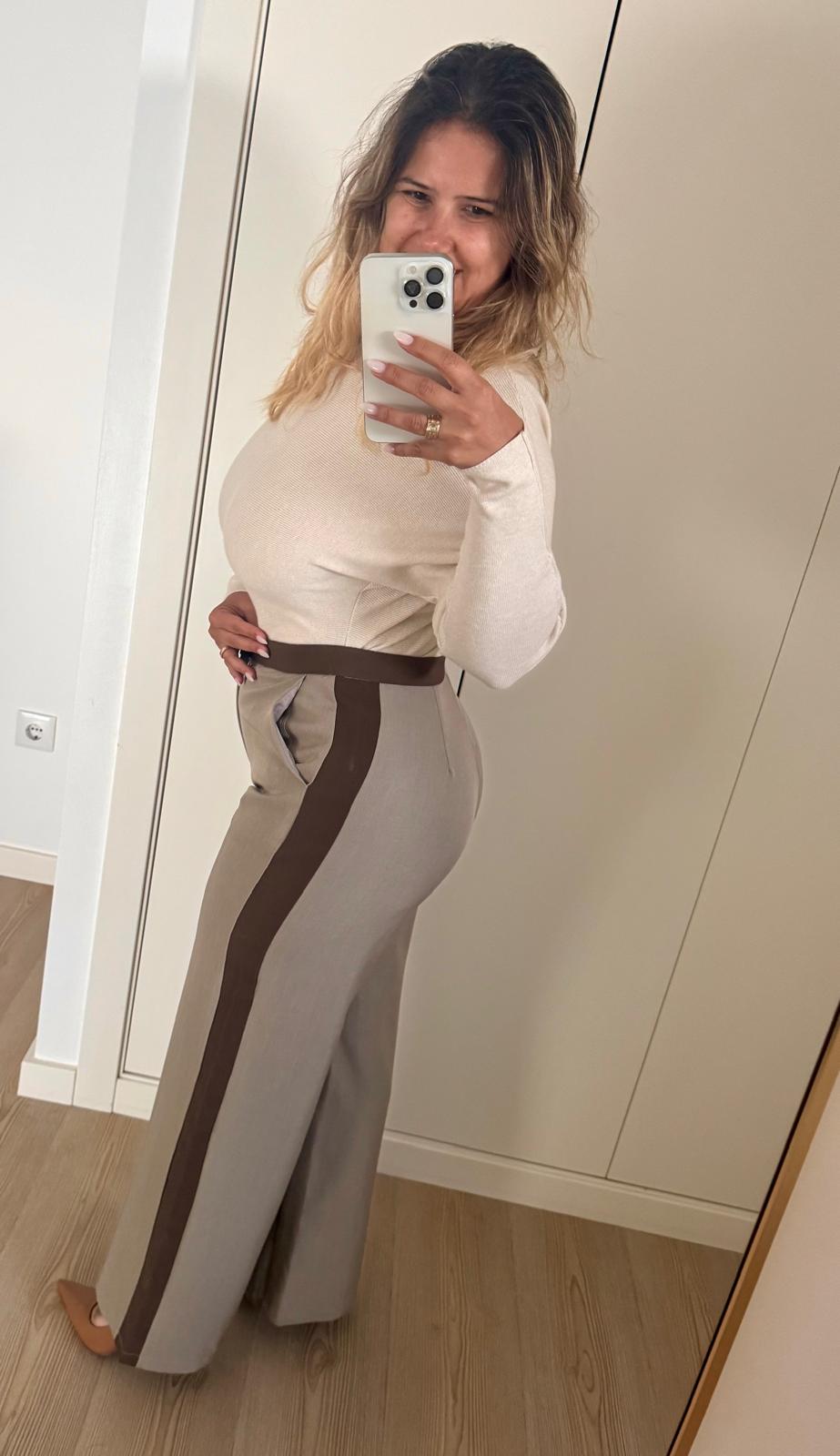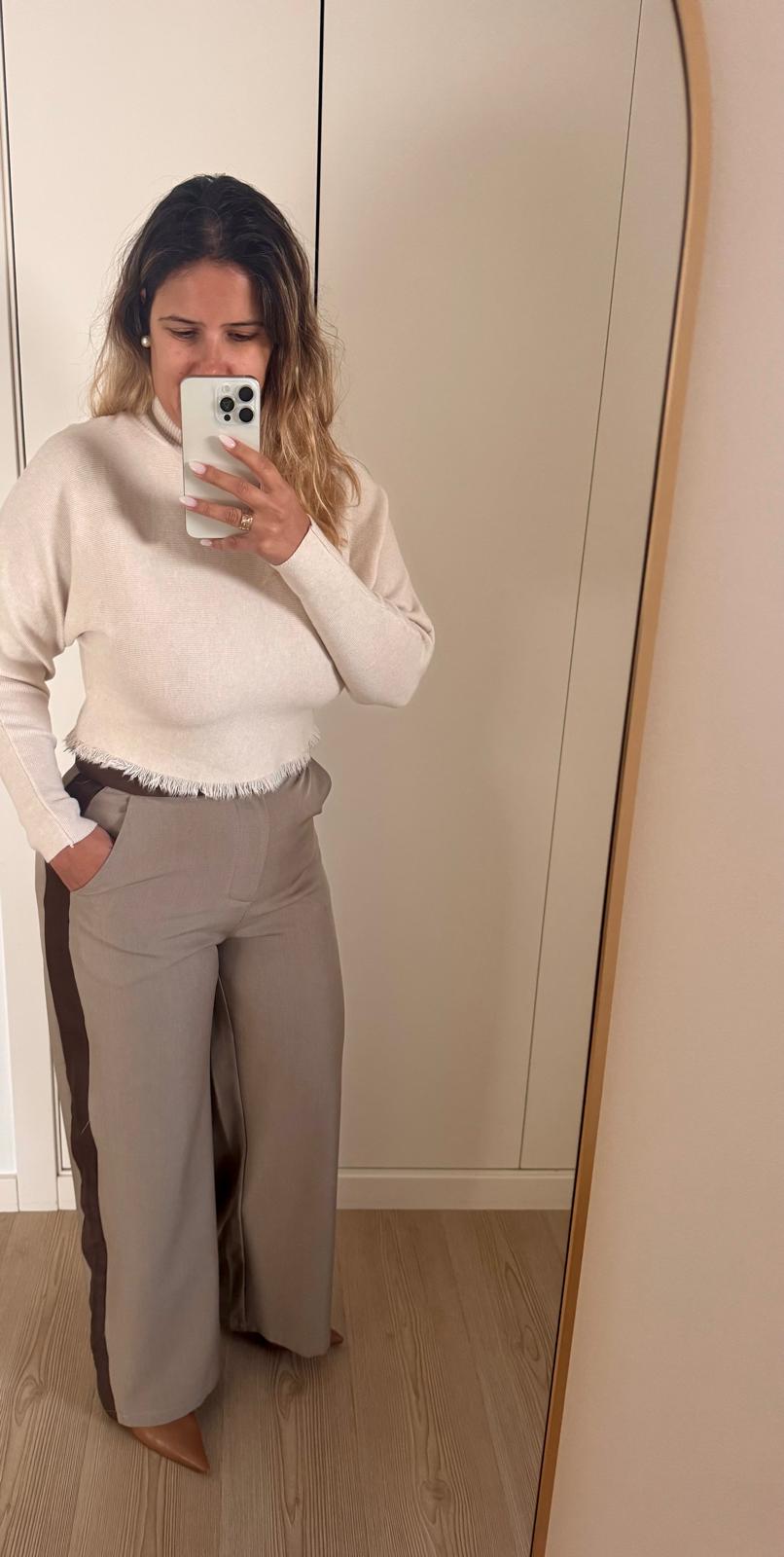 Clássico que nunca sai de moda 🤍🤎Calças de alfaiataria em tons bege e castanho, pe