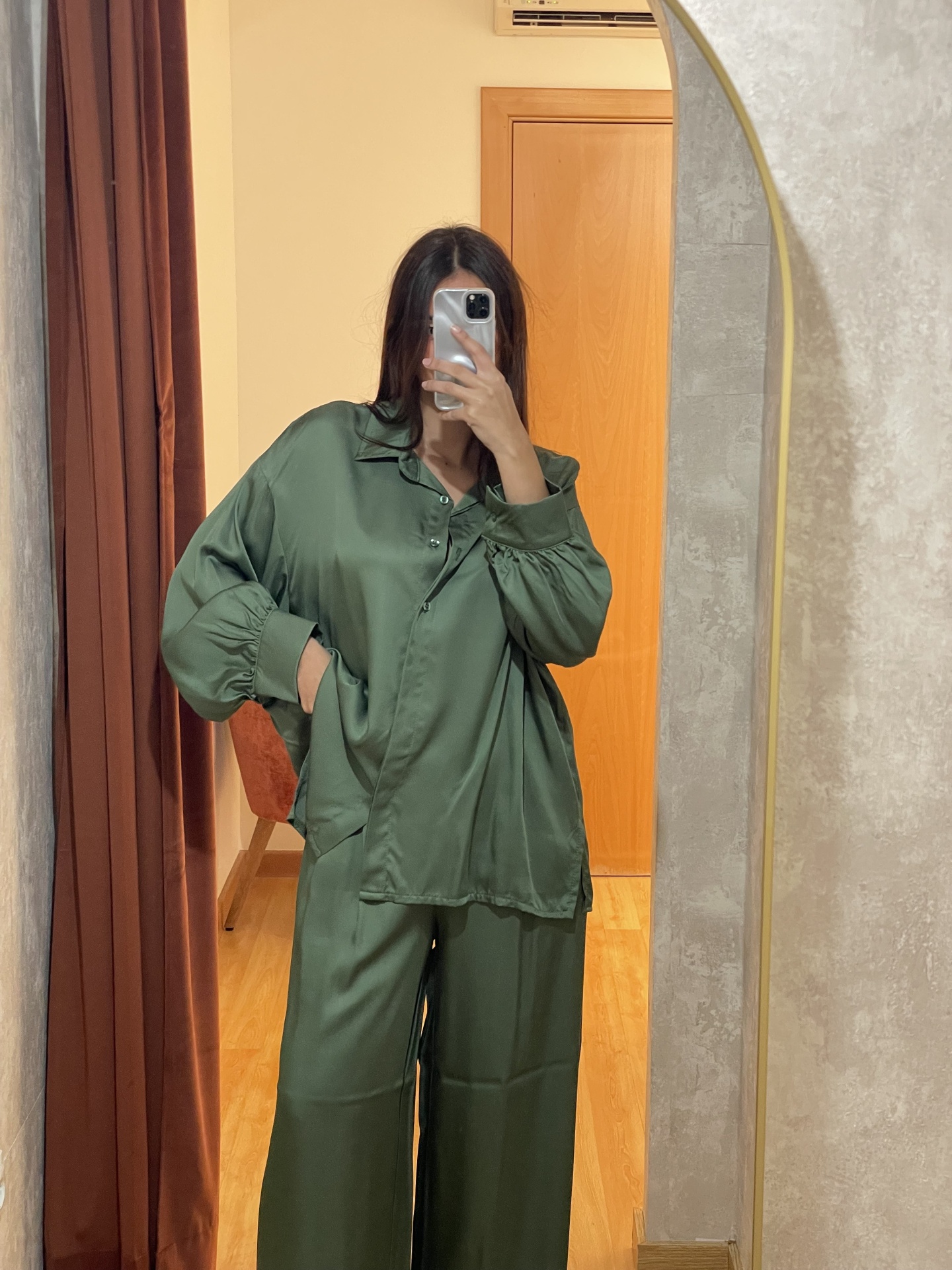 Conjunto oversize de cetim, elegante e confortável. Tecido fluido e acabamento refinado, perfeito para looks sofisticados e modernos. Ideal para quem procura estilo sem sacrificar o conforto.