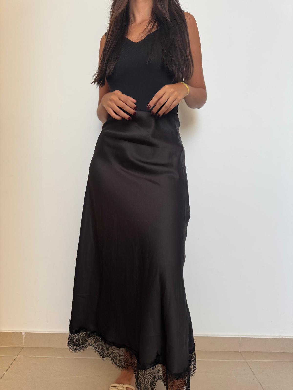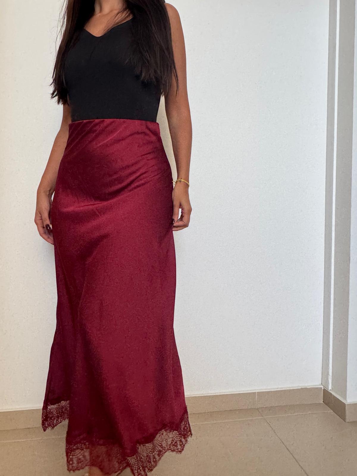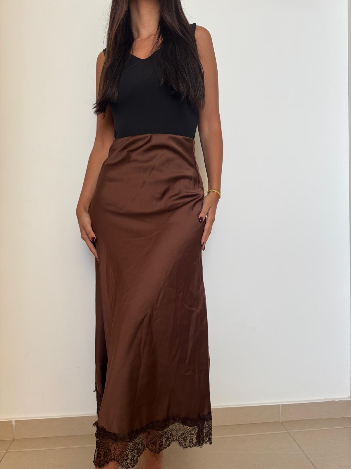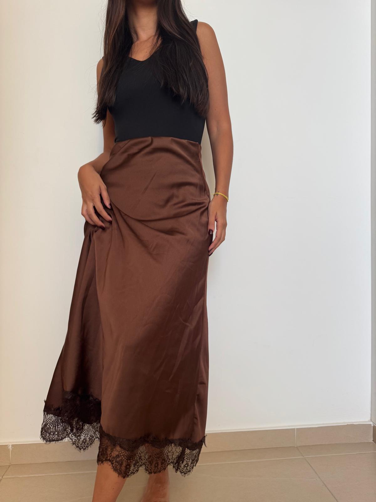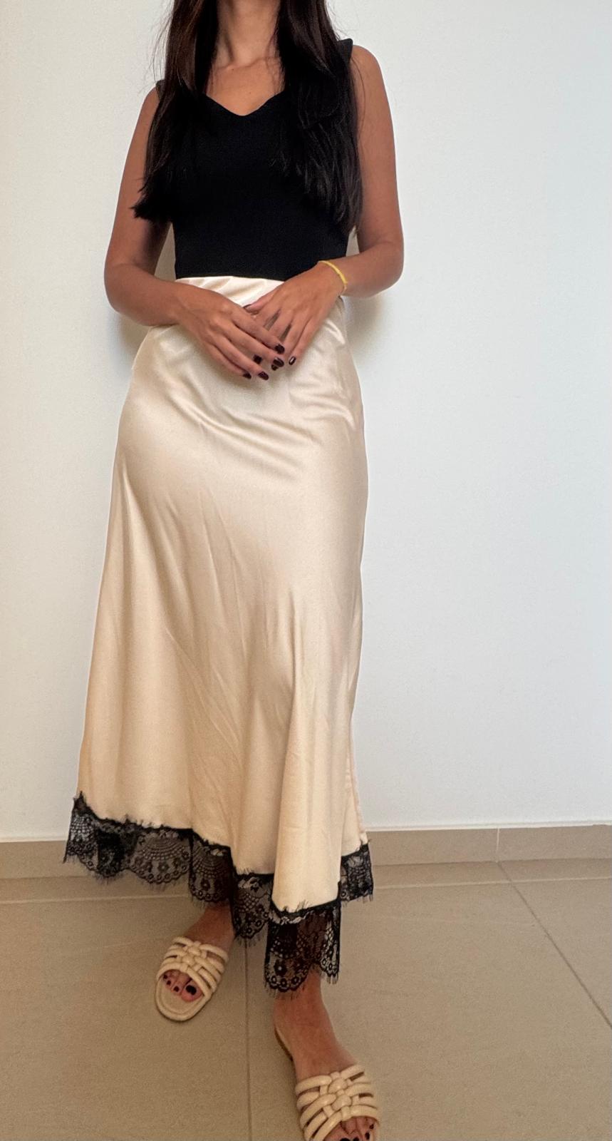Saia de cetim com corte fluido e toque acetinado que realça a silhueta com elegância.